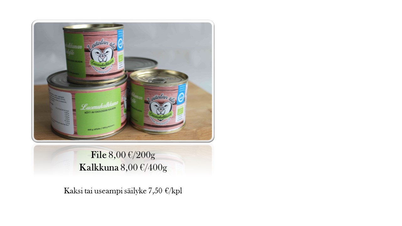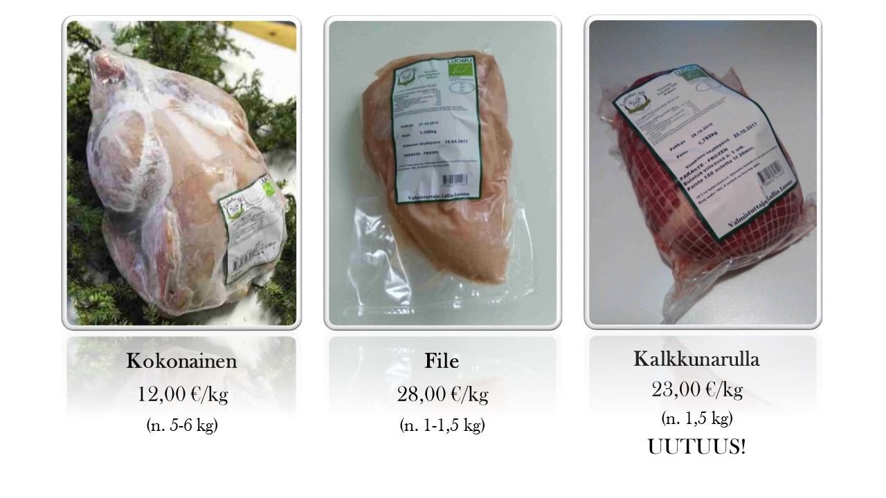 Luomukalkkunaa voi jälleen tilata jouluksi suoraan tilaltamme. Toimitamme tuotteet Kainuun alueelle. Sovitaan yhdessä toimituksesta tarkemmin varauksen yhteydessä.